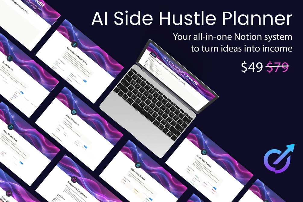 A complete Notion system to turn AI side hustle ideas into profitable income streams — faster, smarter, and without burnout.